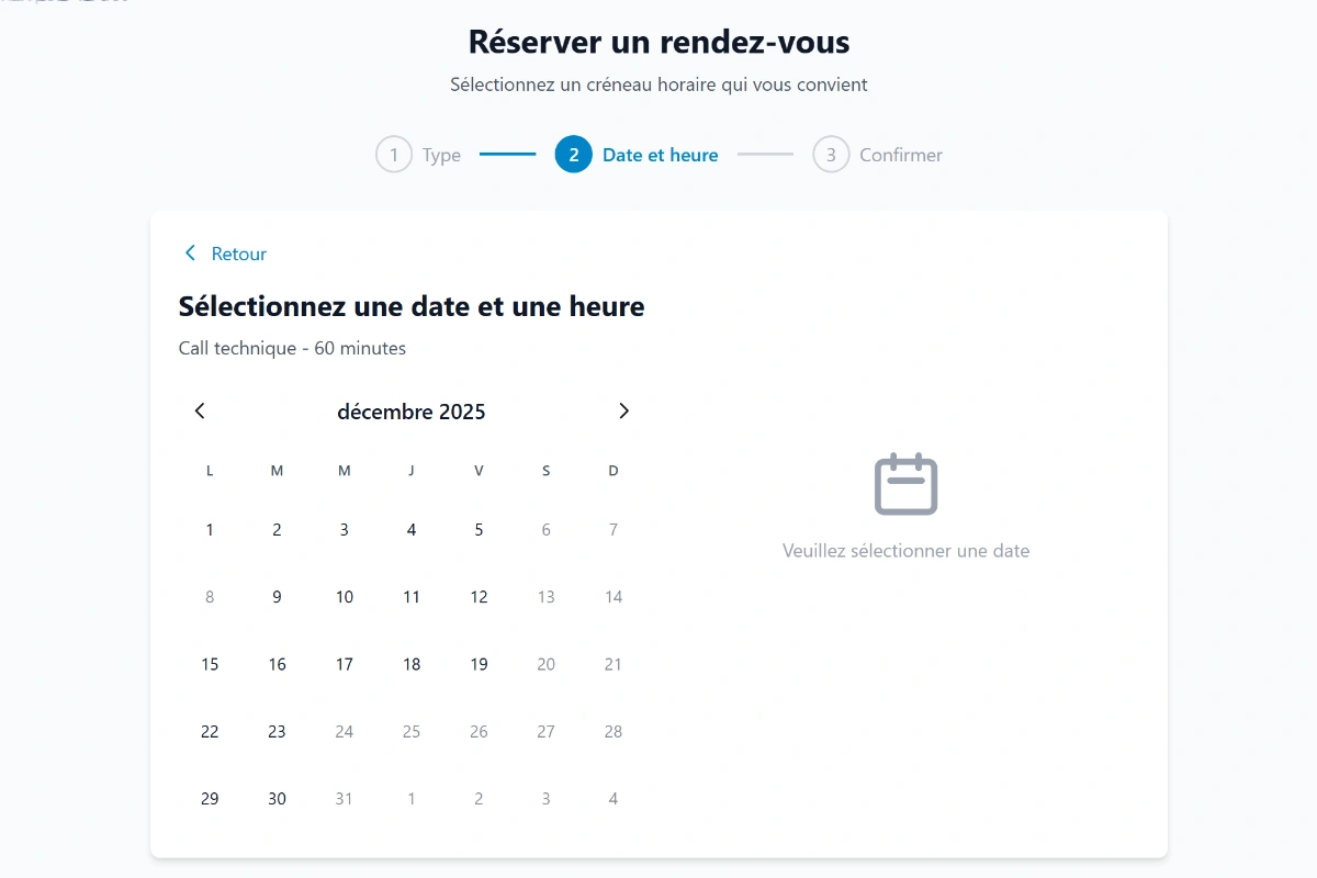 Configurez vos motifs de rendez-vous, définissez leur durée et laissez vos clients choisir le créneau qui leur convient le mieux.